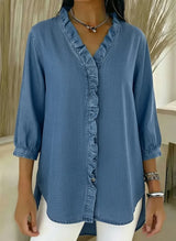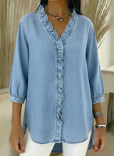 Marina – La blusa denim que equilibra lo casual y lo femenino 💙✨