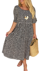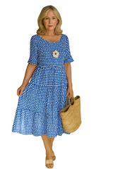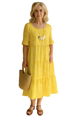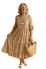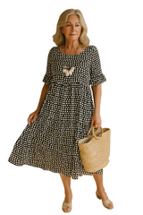 Descubre el vestido midi Melissa, una pieza atemporal pensada para combinar estilo y comodidad en el día a día. Su corte relajado realza naturalmente la silueta, mientras que su tejido suave y transpirable te asegura un confort óptimo desde la mañana hasta la noche. Versátil y refinado, se adapta tanto a salidas informales como a momentos más elegantes.
