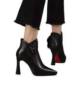 Descubre los botines Pas de luxe, una pieza elegante que combina audacia y confort en un diseño refinado. Confeccionados con materiales de calidad, ofrecen un acabado cuidado y una silueta sofisticada gracias a su punta afilada y su hebilla moderna. Fáciles de poner gracias a su cierre con cremallera, acompañan tus días con estilo y seguridad.